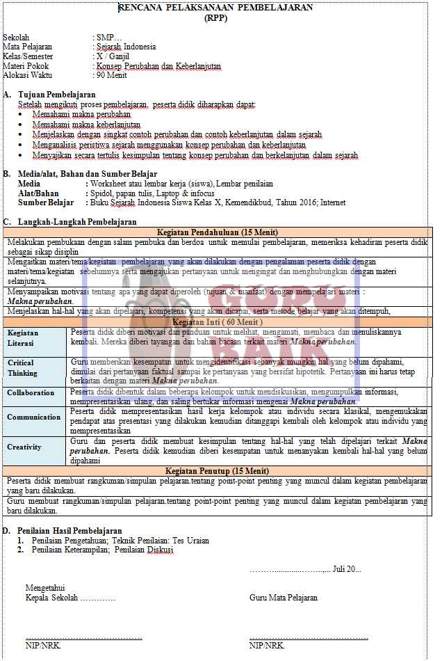 Contoh rpp dan silabus sejarah sma kelas x xi xii kurikulum 2013 revisi 2017 semester 1 dan 2 berikut salah satu contoh rpp kelas x mapel sejarah indonesia yang bisa.